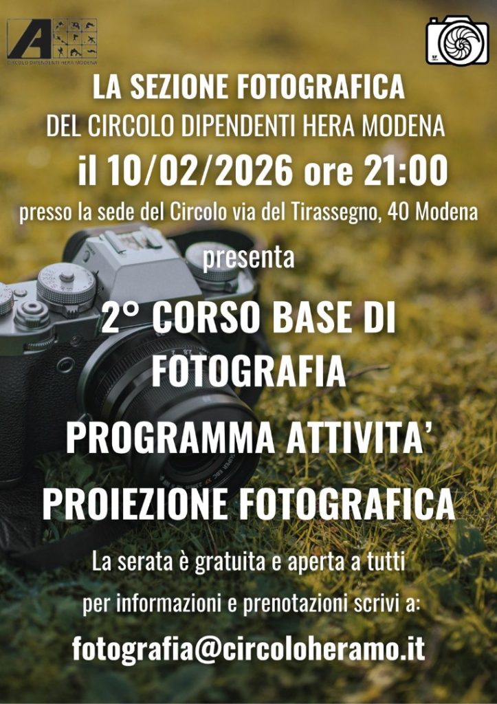 La passione per l’immagine torna protagonista a Modena grazie a una nuova iniziativa culturale dedicata a chi desidera imparare a guardare il mondo attraverso un obiettivo. La Sezione Fotografica del Circolo Dipendenti Hera Modena ha infatti annunciato la presentazione del suo 2° Corso Base di Fotografia.